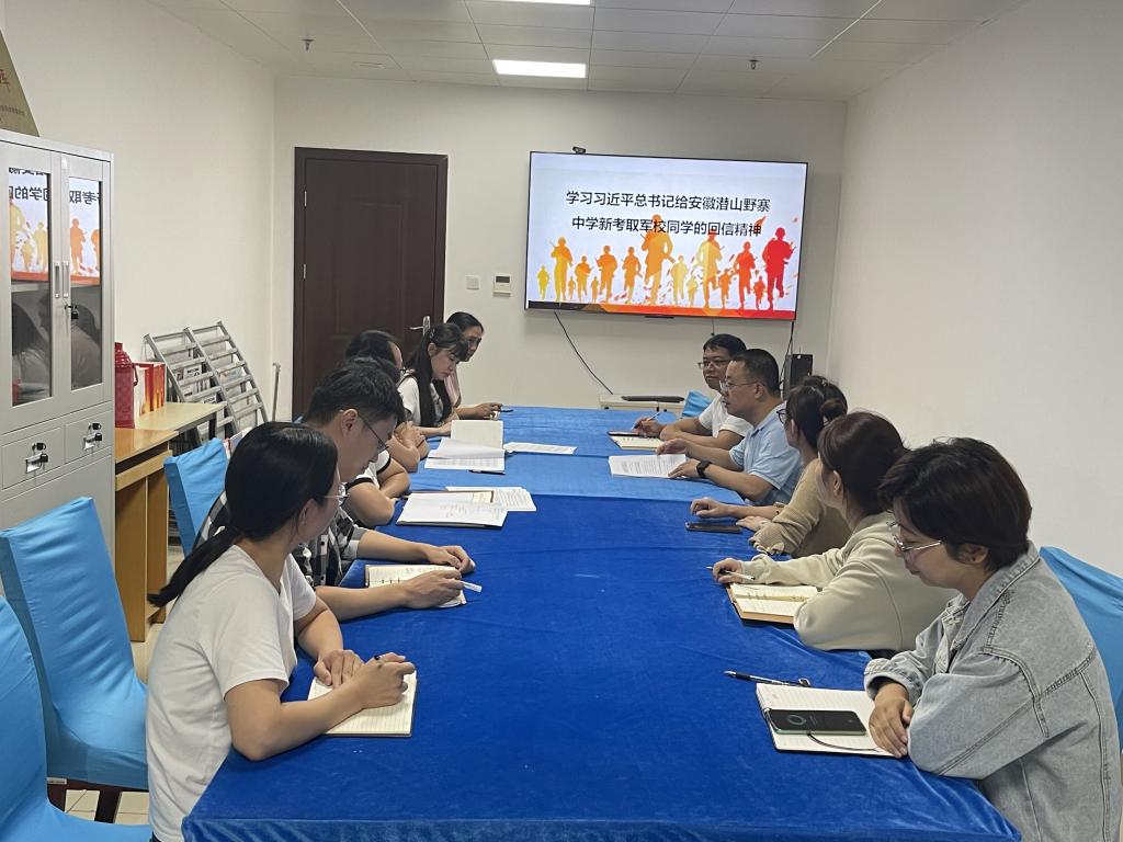 会上,学院党委副书记、纪委书记耿广汉传达了中共中央总书记、国家主席、中央军委主席习近平给安徽省潜山野寨中学新考取军校20名同学的回信。
