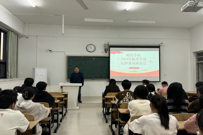 为畅通反馈渠道,解决实际困难,优质服务学生,提高育人实效,10月31日下午,财经学院在致知楼C107教室召开班级纪律委员座谈会。学院党委副书记、纪委书记耿广汉出席会议。全体辅导员、学生会主席团以及权益维护部成员、班级纪律委员等参加。会议由辅导员丁雨妍主持。