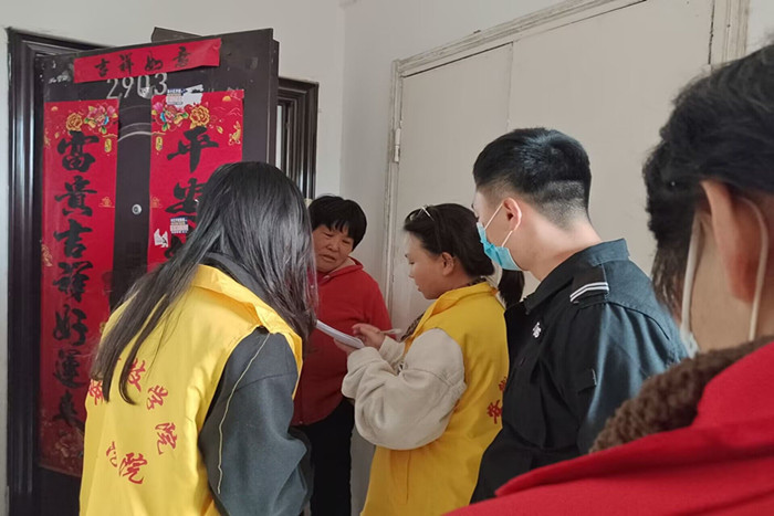 活动中,支部团员在派出所民警和社区工作人员的带领下,通过上门走访的形式向社区居民宣传防范电信诈骗的相关知识,以“冒充领导诈骗”、“贷款诈骗”、“网络兼职刷单”等系列电信诈骗案例对居民进行一一讲解,提醒居民在日常生活中要提高自我安全防范意识,不要轻信所有涉及银行卡相关信息的电话、短信和链接,帮助居民下载国家反诈中心APP。同学们还跟随社区工作人员排查居民矛盾纠纷、了解民情民意、征求群众意见建议。