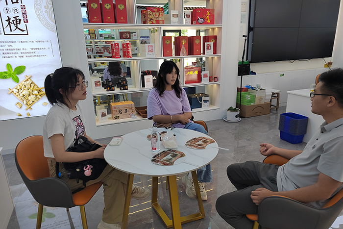 根据所学习的专业知识,实践团队重点对小岗村乡村服务产业发展情况开展调研。在走访电商实体店的过程中,他们深究小岗村电商主要输出的商品种类和经营模式:以多元输出为主,力争打造小岗印象品牌,结合互联网+模式,提升小岗品牌的知名度与认可度。在“皖美小岗”农产品电商平台线下体验店,团队成员了解到小岗农产品的限制性较多,例如小岗葡萄的季节性限制,小岗粉丝的可替代性限制,小岗蔬菜的运输难度限制,这都是小岗村的电商发展需要解决突破的问题。该店店主还提到了小岗村特产农产品同质化、低知名度、低产业集聚效应等存在的不成熟和条件缺陷。团队成员结合专业,与店主分享了阳光果园等成功的电商案例。店主表示小岗电商经营团队将积极应对问题,与小岗官方团队一起研究新方法、新回路,并表达了能够做好小岗电商媒体,帮助小岗农产品能够走出去的决心。