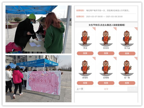 “你是最美的时光”板块由学生提供自己的自拍照,生活照及活动照,也可以是拍摄他人的照片,在易班线上投票进行评比,旨在挖掘身边女生或自己身上的闪光点,体现女生善良、温柔、自信、坚韧、活力等各方面魅力。“时光邮局”板块在龙湖校区知味园前小广场开展,邀请广大女生给过去一年或者几年内的自己写上一小段话,粘贴在展板上。活动旨在根据心理学中叙事心理的理论,通过个人叙述的体验,重构过去、感知现在、期盼未来,唤起内在改变。这一活动受到了女生们的喜爱,她们纷纷在展板上写下自己的感悟、期许,也有男生前来在展板上写下了对女生的祝福。
