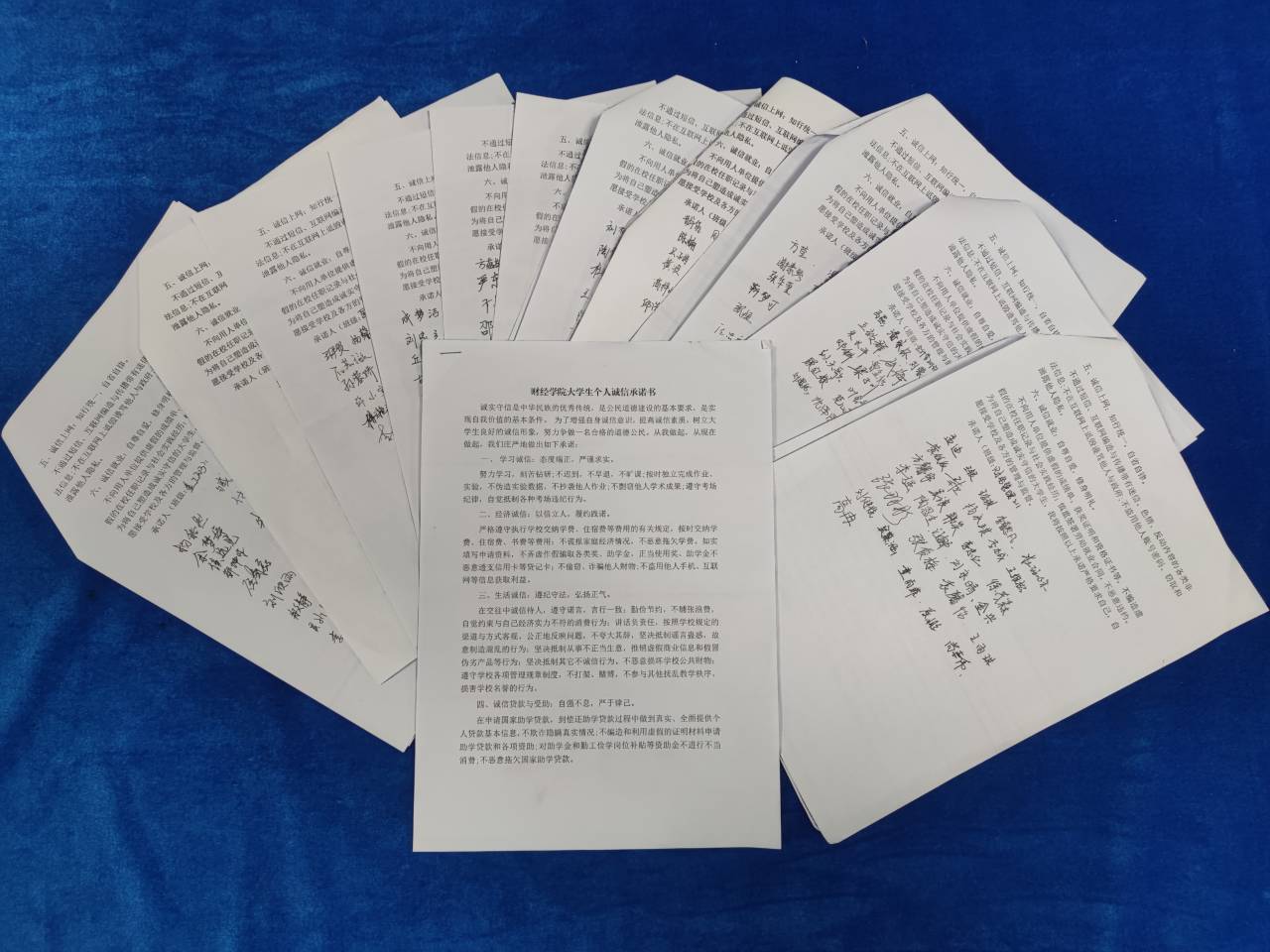 5月16日至20日,学院全体学生签署了《大学生个人诚信承诺书》。本次承诺内容涵盖资助诚信、生活诚信、学习诚信等多方面的诚信问题,旨在指引同学们认识到诚实守信的重要性,主动将诚信意识融入到生活中的点滴小事,培养心怀感恩、勇担责任、自强不息、守信做人的传统美德。