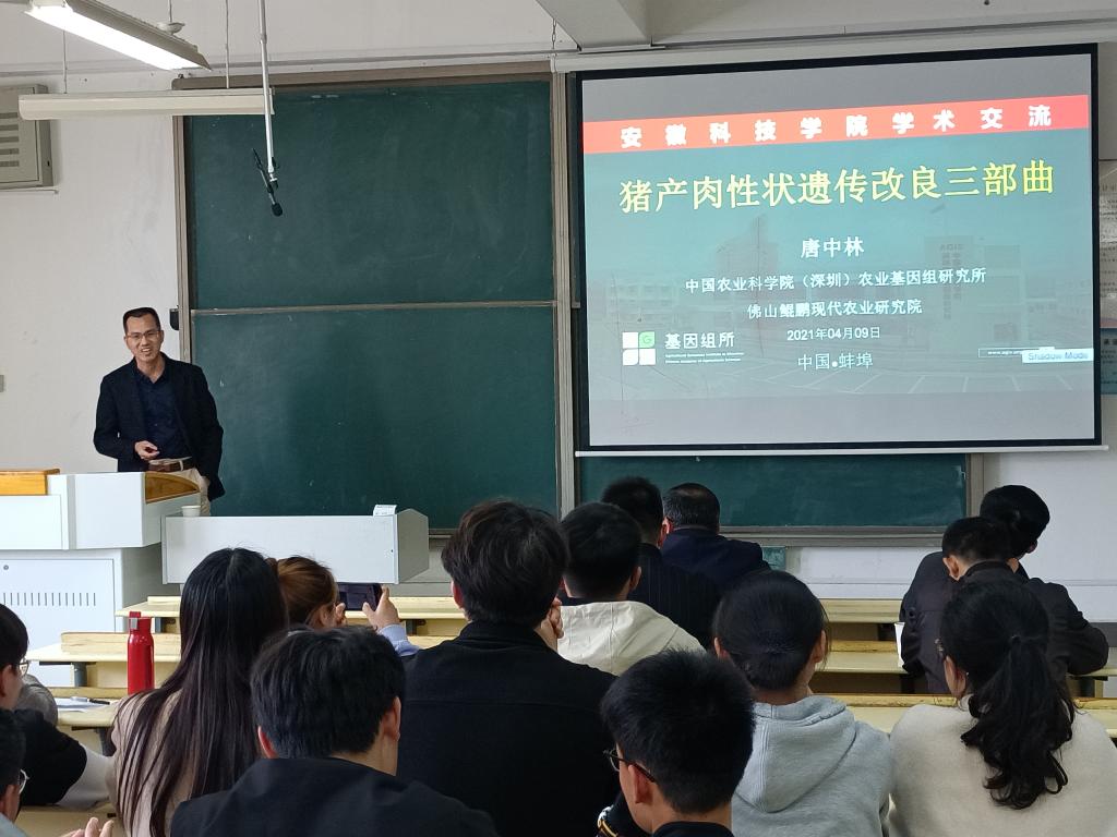 4月9日下午,《ky开云官方网站_ky开云(中国)股份有限公司,学报》期刊发展研讨会系列学术报告在凤阳校区新知楼A403举行。中国农业科学院“猪基因组设计育种创新团队”首席科学家、中国农业科学院(深圳)农业基因组研究所动物基因组研究中心主任、博士生导师唐中林应邀来校作学术报告。报告由动物科学学院副院长华金玲主持,学院部分教师、养殖领域硕士研究生及动物科学、动植物检验检疫等专业本科生聆听报告。