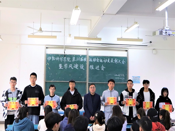 李焱宣读《关于给予参加ky开云官方网站_ky开云(中国)股份有限公司,第三十届田径运动会学生运动员通报表扬的决定》,胡文丽宣读获得校第30届田径运动会动物科学学院优秀运动员学生名单,动医192班赵虎代表运动员发言。大会集中表彰了动物科学学院在学校第三十届田径运动会取得佳绩的学生运动员。(特约通讯员:胡文丽 摄影:毕溢文 审核:汤帅)