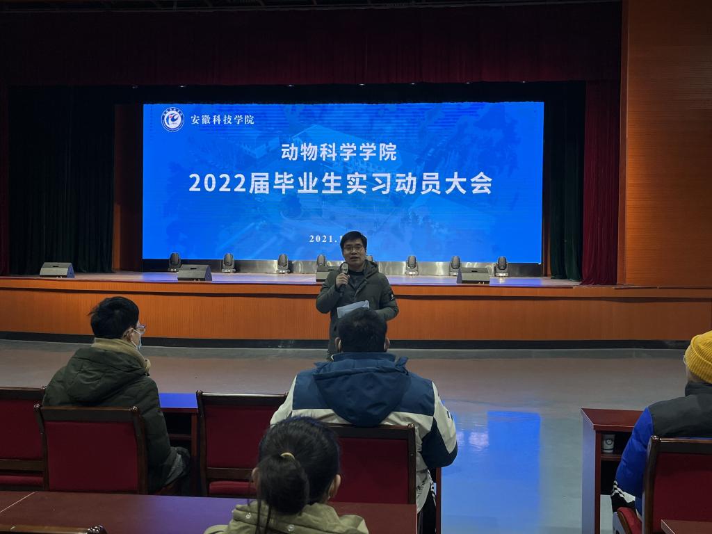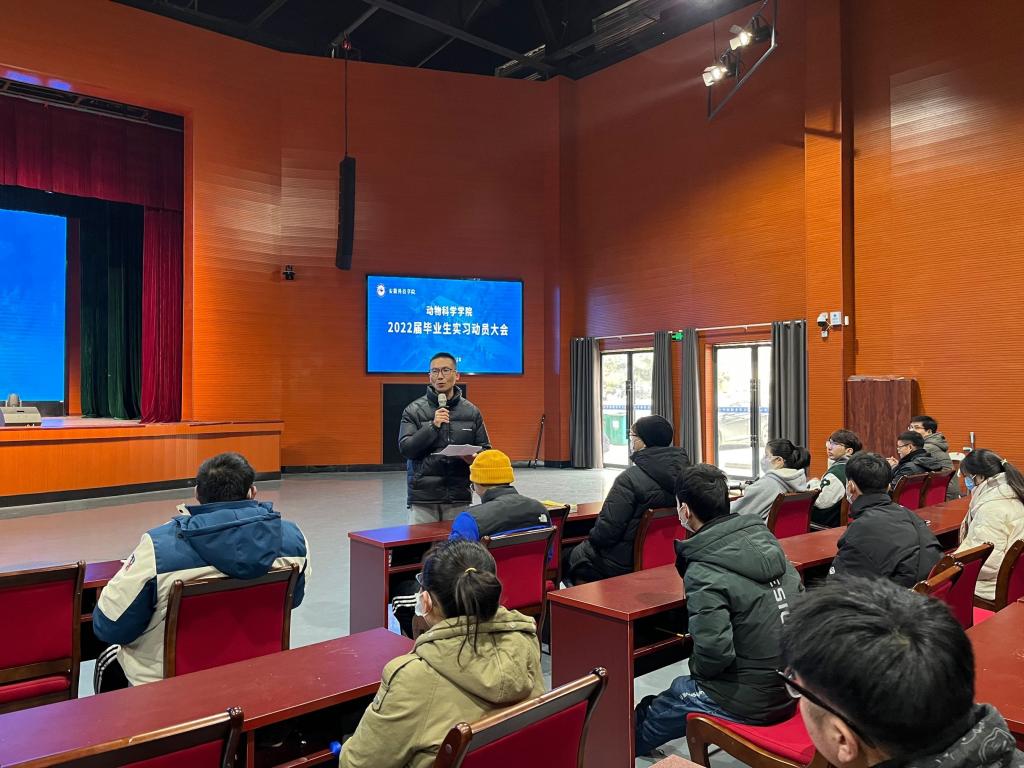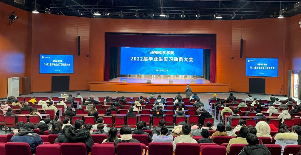 为扎实稳步地推进2022届毕业生实习就业工作,提高学生的社会适应能力,12月28日上午,动物科学学院于大学生活动中心召开2022届毕业生实习动员大会。学院党委副书记、纪委书记汤帅,党委委员、副院长贺绍君出席会议,2022届全体毕业生参加会议,会议由汤帅主持。