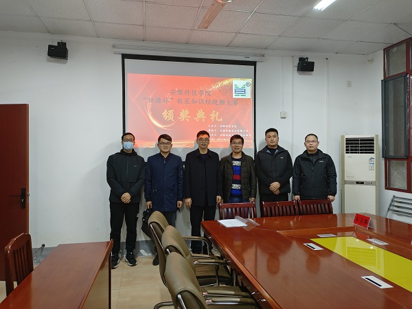 11月20日下午,动物科学学院在学院会议室举行“恒源杯”牧医知识短视频大赛颁奖仪式。安徽恒源药业有限公司总经理王炬、生产部经理王志强、电商部经理徐国明,动物科学学院党委委员、副院长贺绍君,动物医学实验教学中心主任李静、动物医学系博士张留君、辅导员刘成义出席。