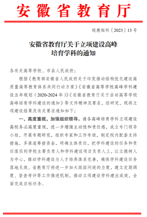 “材料与化工”安徽省高峰培育学科