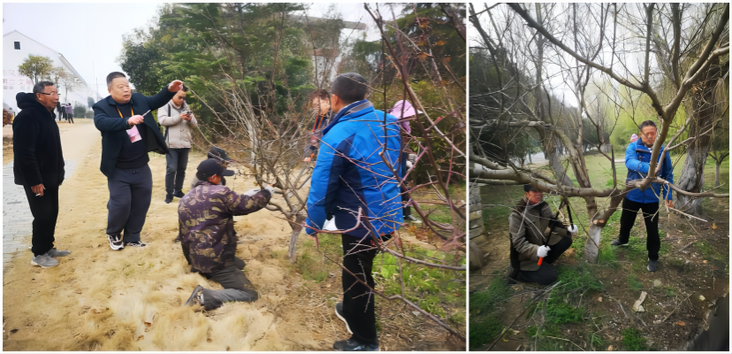 3月16日上午,我校建筑学院风景园林专业陈鸿副教授与学校具有丰富绿化工作实践经验的王超纲科长、专技人员汤国林等一起,搭乘“安科-小岗周末大篷车”,早早来到凤阳县小岗村严岗片区,在与片区广场等候的小严片区主任严立奎、小岗村园林公司负责人缪梦男及慕名赶来的小岗村园林护理技术人员简短寒暄后,径直来到广场北侧的绿化带,点评现场花木春季修剪,对需要重新修剪的,作出示范。随着专修剪刀和钢锯的轮番上阵,一棵看似杂乱的海棠树逐渐变得“通透”“敞亮”,有型有样,汲养采光能力大大改善。