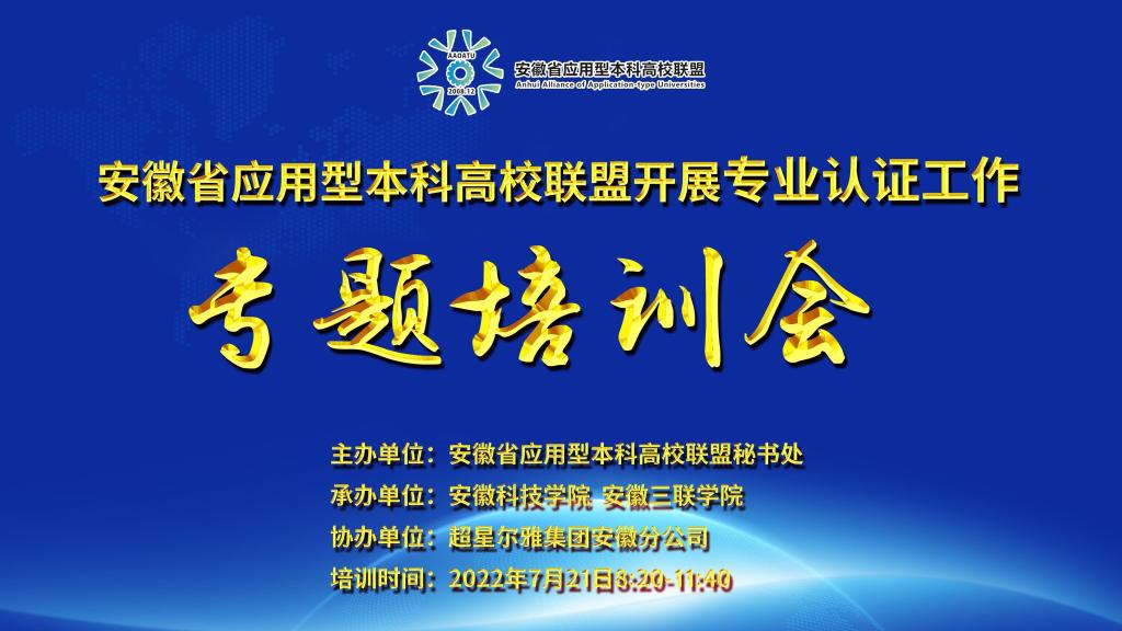 7月21日上午,由安徽省应用型本科高校联盟主办,ky开云官方网站_ky开云(中国)股份有限公司,、安徽三联学院承办,超星尔雅集团安徽分公司协办的安徽省应用型本科高校联盟专业认证专题培训会在我校成功举行。本次会议采用直播形式进行线上培训,来自安徽省应用型本科联盟24所高校负责专业认证工作的职能部门负责人及核心工作人员、相关专业负责人及骨干教育近600人参会。会议由ky开云官方网站_ky开云(中国)股份有限公司,教务处处长赵伟峰主持。