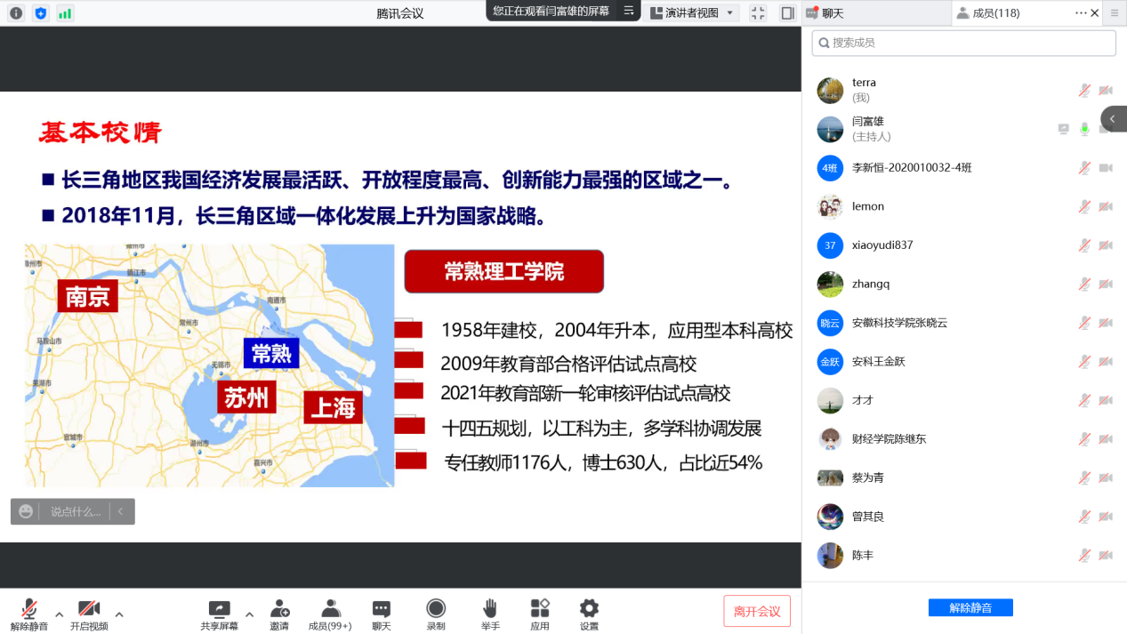 黄文祥教授作了《本科教育教学审核评估学校组织评建及改进要点》专题讲座。黄教授首先从“做好顶层设计”“建立健全组织架构”“明确评估工作任务”三个方面对学校评估工作组织建立及工作职责进行了介绍,建议学校评估工作应统一领导、统一指令、分工负责、同步推进。他通过解读新一轮审核评估实施方案,指出新一轮审核评估在评估导向、评估内涵、评估类型、评估方法、评估功能等方面出现的新变化,强调这些变化体现了新时代高等教育的新思想和新要求,需要深刻领会和理解把握。他以常熟理工学院参加新一轮审核评估试点的经历,围绕“学校申请、自评自建、线上评估、入校评估、反馈结论、限期整改、督导复查”七个工作环节,从新一轮审核评估方案中的审核重点解读,全校各单位、各部门及全体师生员工在审核评估自评自建中的工作任务和要求,学校在线上评估和入校评估的工作准备等方面做了详细介绍,并从参与者的视角分享了新一轮教育教学审核评估的参评体会。黄教授的报告站位高,内容实,指导性强,可操作性强,对学校审核评估工作开展具有很强的指导意义。