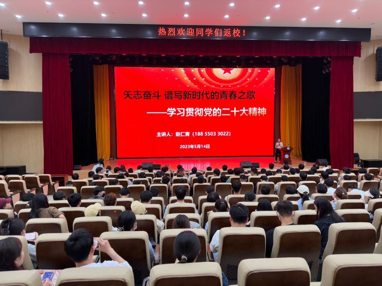 思政课活动中,学校邀请了安徽省“江淮文化名家”青年英才、团安徽省委青年宣讲师、安徽省教坛新秀赵仁青老师做了“矢志奋斗 谱写新时代的青春之歌 ——学习贯彻党的二十大精神”的主题报告。报告从深刻领会党的二十大的重大意义、准确把握党的二十大精神实质、马克思主义与新时代中国青年、总书记心中的新时代好青年四个方面进行了宣讲。赵老师通过对马克思主义主要创立者马克思的人生轨迹、高远志向、伟大人格和理论贡献的阐述,激励青年学子们,按照总书记心中的新时代好青年的指引,不忘初心、牢记使命,立志做“志存高远、胸怀家国”的追梦人,做“激流勇进、奋楫争先”的弄潮儿,做“千磨万击、百折不挠”的拼搏者,做“踔厉奋发、笃行不怠”的实干家,在新征程上披荆斩棘,奔涌破浪,在矢志奋斗中谱写青春之歌!