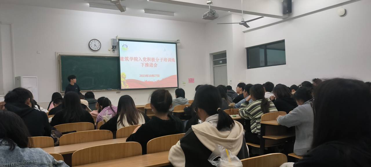 10月27日晚建筑学院在致知楼C105召开第59期入党积极分子培训线下推进会,会议由党校培训助理李庆龙主持,组织员吴婷婷老师指导,学院第59期入党积极分子70余人参加。