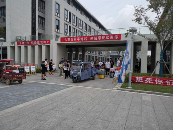 9月17日清晨,五湖四海的莘莘学子纷纷到来,建筑学院的学生党员怀揣着满腔热情早早等候在迎新现场。