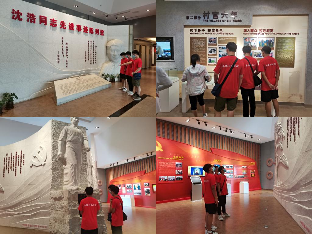 参观完大包干纪念馆后,团队成员来到了沈浩同志先进事迹陈列馆。在那里,看着陈列馆中的照片、事迹,听着讲解员的述说,沈浩同志心系群众、艰苦奋斗的人物形象鲜活了起来。他用一腔热血激活了小岗村一潭春水。沈浩在任期间,时刻关心、牵挂着小岗村村民,并秉持清正廉洁,艰苦朴素的良好作风。直至2009年11月6日,疲倦的沈浩睡下后再没有醒来……斯人已逝,但沈浩精神却在江淮大地上树起了一面新的旗帜。“两任村官呕心沥血带领一方求发展,六载离家鞠躬尽瘁引导万民奔小康”,一副挽联凝练了沈浩的6年小岗生活,同时也是沈浩一心为公、无私奉献精神的最好诠释。