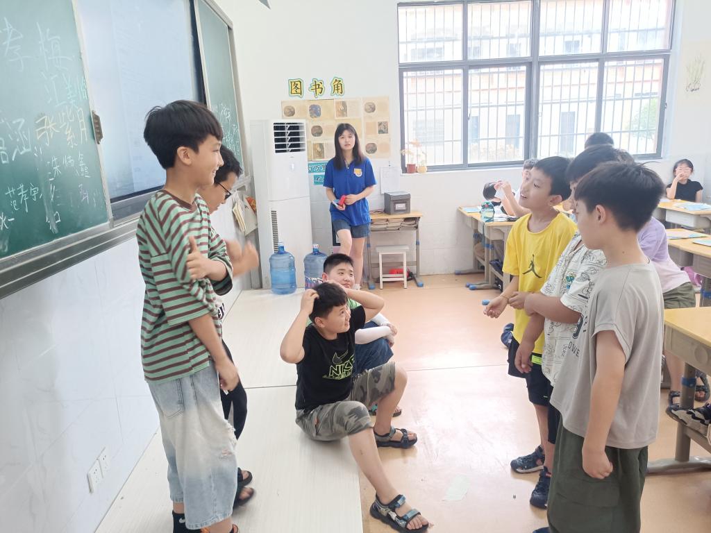 活动开展第一天上午,团队成员在慎城镇中心学校校长及小朋友们的热情配合下,顺利开展了一场温馨的见面会。在教室里,孩子们井然有序地就座,专心致志地聆听着老师们的自我介绍以及接下来五天的活动安排。随后,孩子们积极主动地上台,自信地介绍了自己的姓名、兴趣爱好、特长和梦想等。每一个完成自我介绍的小朋友都收到了团队成员精心准备的贴纸,而每一位“老师”也在一旁根据孩子们的自我介绍在花名册上做了详细的记录,为日后的精准辅导做好准备。