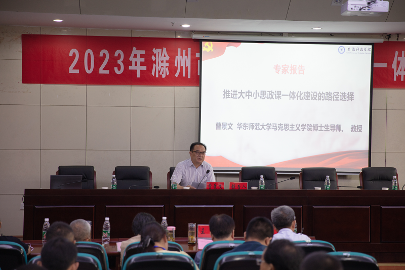 华东师范大学马克思主义学院博士生导师曹景文教授以《推进大中小思政课一体化建设的路径选择》为题作专题报告,进一步阐述了大中小思政课一体化建设的内涵、任务和价值意蕴,指出高校在推进过程中存在的不足和问题,明确推进大中小思政课一体化建设的路径选择。