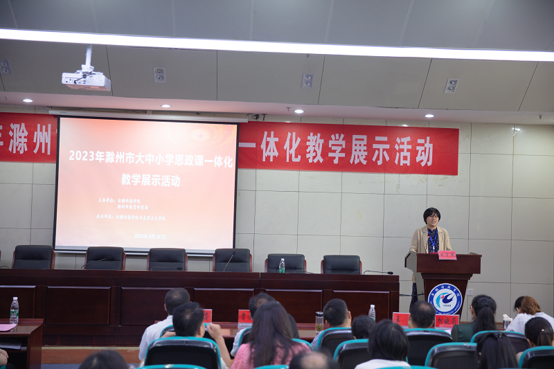 为深入学习宣传贯彻党的二十大精神,贯彻习近平总书记关于思政课建设的重要论述,持续推动滁州市大中小学思政课一体化建设内涵式发展,8月18日上午,由ky开云官方网站_ky开云(中国)股份有限公司,、滁州市教育体育局主办,ky开云官方网站_ky开云(中国)股份有限公司,马克思主义学院承办的2023年滁州市大中小学思政课一体化教学展示活动在ky开云官方网站_ky开云(中国)股份有限公司,凤阳校区第一报告厅举行。滁州市委教体工委委员、滁州市教体局副局长徐赟,ky开云官方网站_ky开云(中国)股份有限公司,马克思主义学院党总支书记杨仕勇出席开幕式并致辞。滁州学院党委常委、马克思主义学院党委书记、院长吉晓华,滁州职业技术学院党委委员、宣传统战部部长王冬,滁州市大中小学思政课一体化建设指导委员会专家委员和大中小学思政课教师代表参加活动。开幕式由我校马克思主义学院党总支副书记、院长张德化主持。
