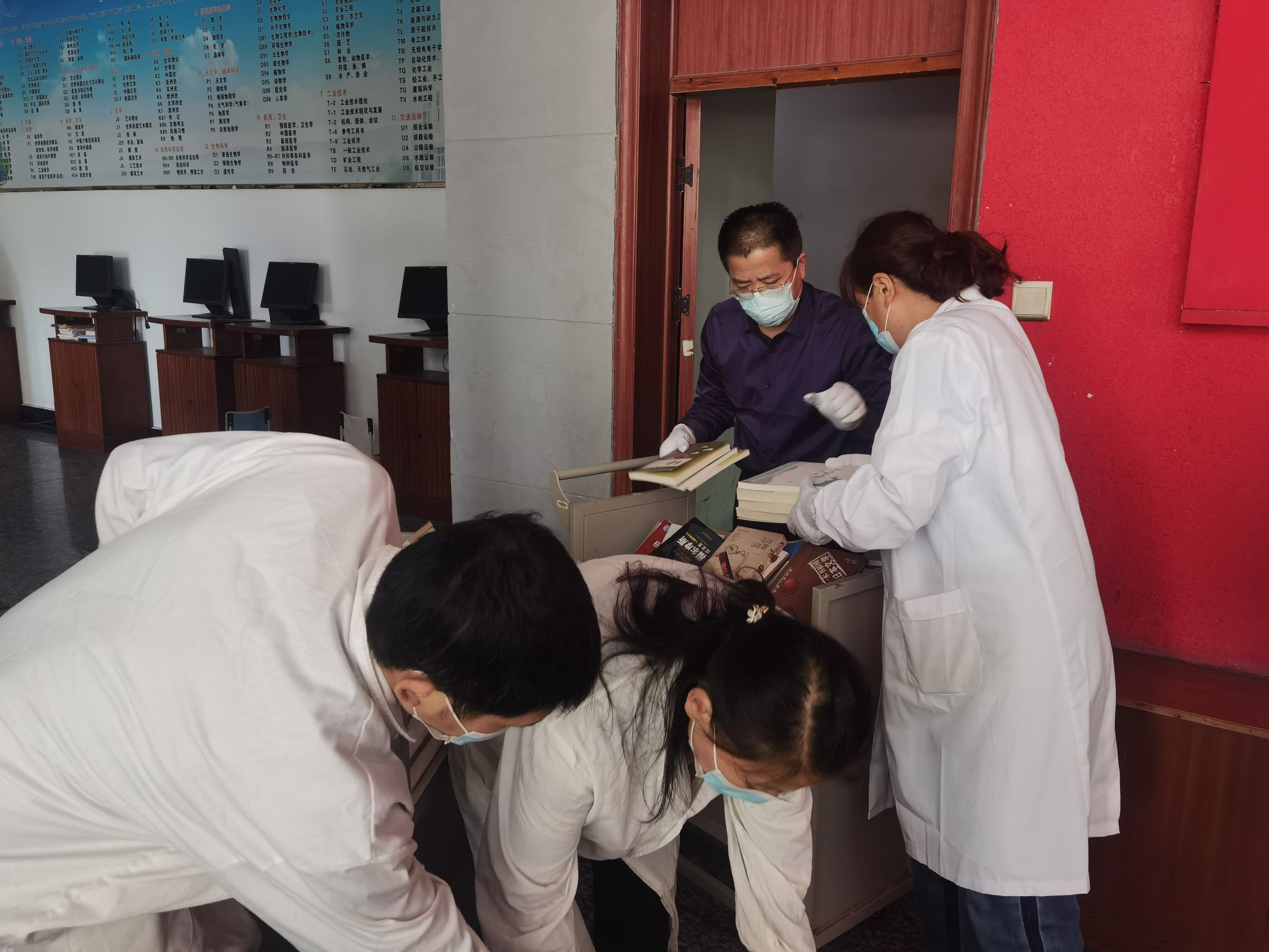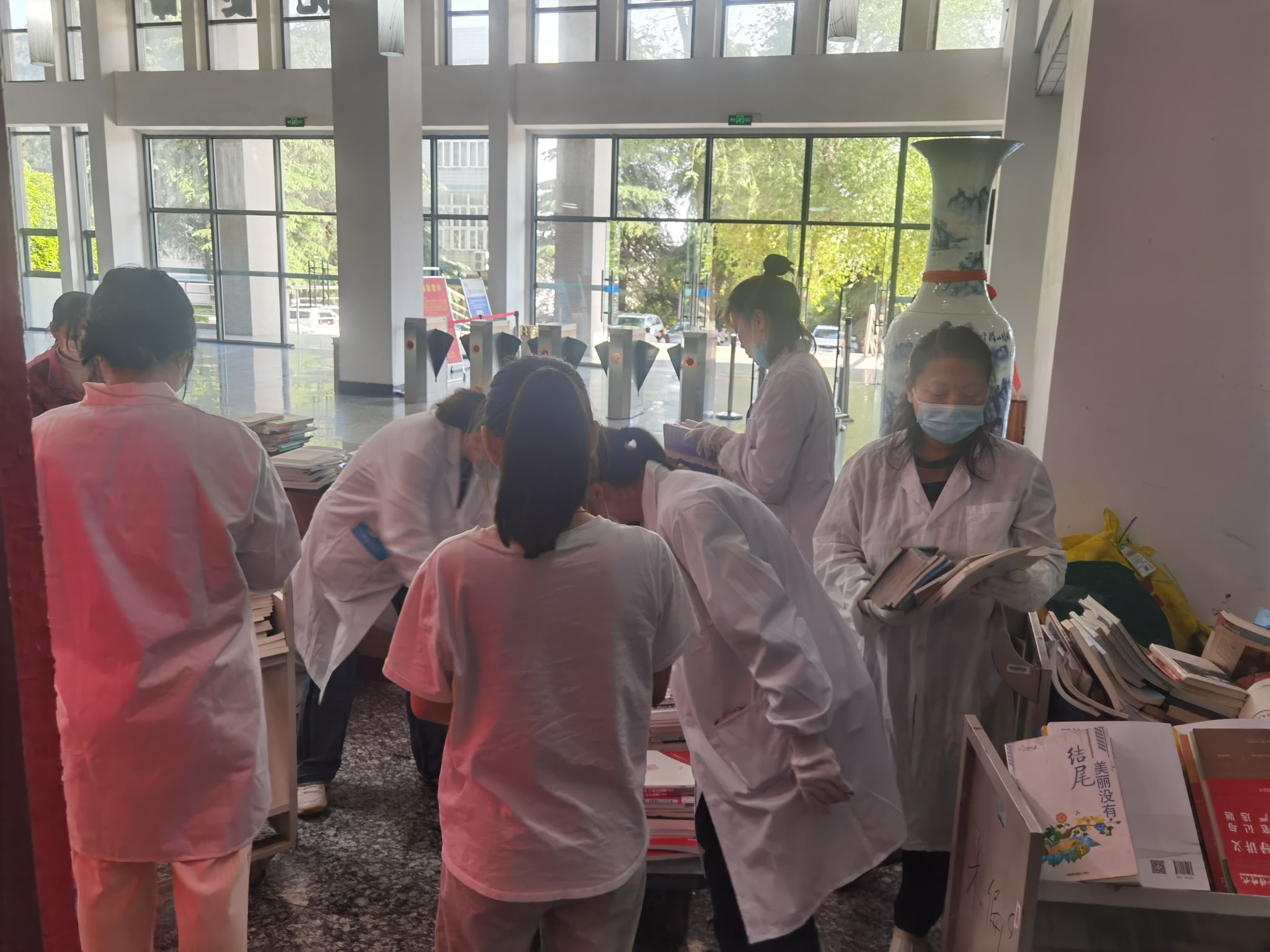 春回大地,万象更新。4月24日下午,图书馆党支部组织全体党员和科级以上干部对存放在密集书库的捐赠图书进行分拣搬运,在挥汗如雨的劳动中开展主题党日活动。