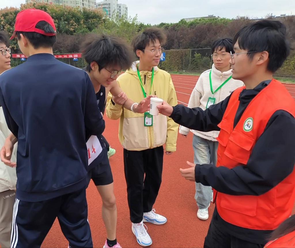 运动会当天,身着橙色马甲的志愿者们努力做好后勤保障工作。比赛前在缓冲带、跑道旁、检录处……总是能看到志愿者们热心的帮助运动员进行赛前热身,引导运动员到达正确地点,搀扶刚刚结束比赛的运动员并及时递水,为其补充水分。志愿者们一丝不苟的完成工作,他们的认真值得运动员所信赖,更是运动员坚实的后盾,帮助他们心无旁骛的投入比赛,全力以赴,为生命与健康科学学院再创辉煌!(作者:张佳仪 摄影:汪东亮 尹银银)