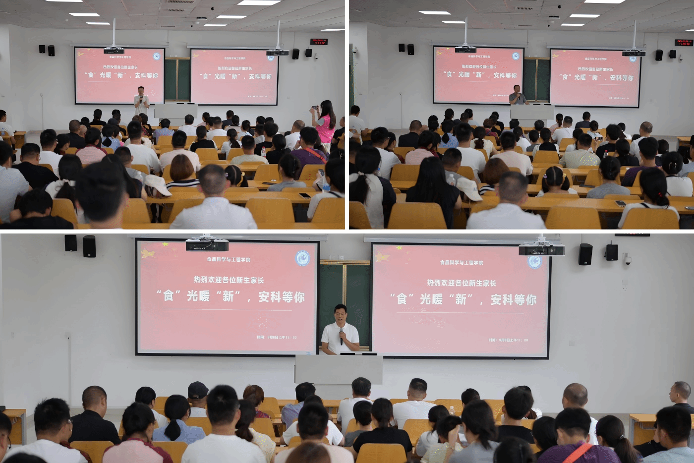 上午十一点,学院在101学术报告厅召开了新生家长见面会并现场邀请家长进入了学院2025级家校共建群。学院党委书记付光玺致辞,他介绍了学院学生培养的理念及成效,也希望各位家长能够多多支持和理解学院工作,共同为孩子成长成才提供支撑。院长杜传来介绍了学院整体情况。副院长翟立公介绍了学院教学科研等方面的情况。家长会后,有家长表示:“孩子送到安科是正确的,今天过去看到后非常放心,学校的领导和老师们非常用心和负责任!”下午四时许,学院领导一一走访了新生宿舍,学院领导与新生亲切交谈,为同学们顺利开启大学时光增强了信心和动力。