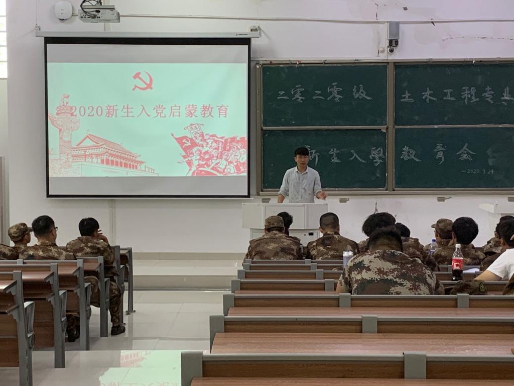 为激发2020级新生爱党爱国爱社会主义热情,树立正确的入党动机,建筑学院各学生党支部纷纷开展入党启蒙教育,报告由各党支部书记主讲。