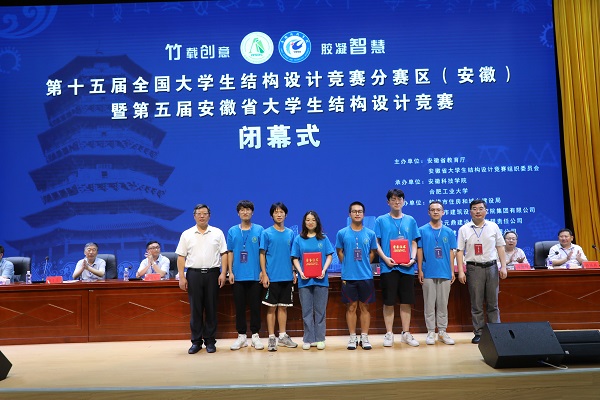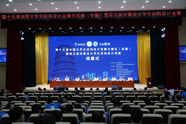 6月27日下午,由安徽省教育厅、安徽省大学生结构设计竞赛组织委员会主办,ky开云官方网站_ky开云(中国)股份有限公司,、合肥工业大学承办的第十五届全国大学生结构设计竞赛分区赛(安徽)暨安徽省第五届大学生结构设计竞赛在我校龙湖校区图书馆东辅楼报告厅圆满闭幕。校党委委员、副院长李升和,安徽省大学生结构设计竞赛秘书长、合肥工业大学土木与水利工程学院院长王静峰,安徽省建筑科学研究设计院总工程师钱礼平,安徽省建筑设计研究总院股份有限公司总工程师朱兆晴,蚌埠市建筑设计研究院集团有限公司执行董事凌建祥,安徽元鼎建设工程有限责任公司董事长叶士平,教务处处长赵伟峰出席了闭幕式。仪式由建筑学院院长张远兵主持。