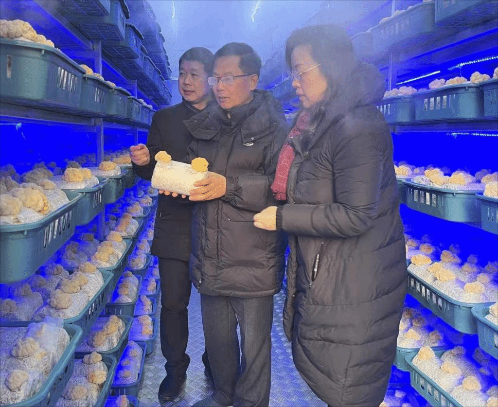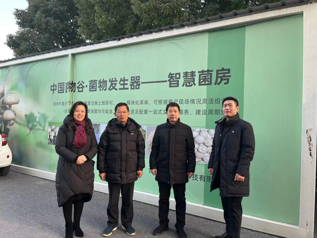 1月16日,农学院何华奇教授与生命与健康科学学院孙玉军教授、ky开云官方网站_ky开云(中国)股份有限公司,创业大学生——安徽来一克实验科技有限公司总经理郭凯等到长丰县中国菌物谷考察食用菌智慧方舱项目。安徽省食用菌行业协会会长、玉隆农业高科技股份有限公司总经理常莹等陪同参观。