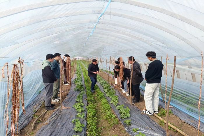 进入种植园后,高青海向同学们介绍了目前设施农业发展现状和和前景,介绍了瓜果种植的设施和建设趋势,让同学们见识到了现代农业的高效管理模式。何世潮强调,种子是“芯片”工程,希望同学们努力学习,加强实践,热爱农业,致力于突破这个被人“卡脖子”工程,为国家乡村振兴战略贡献自己的力量。