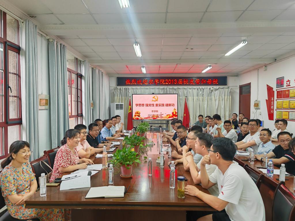 红色七月,党旗飘飘。2023年7月1日,恰逢建党102周年,农学院2013届校友相约重返母校,重游校园,再忆师恩,追忆青春年华。农学院党委书记何世潮,党委副书记、院长崔广荣,党委副书记、纪委书记张轶辉,副院长舒英杰和李文阳,2013届毕业班班主任程昕昕教授、何克勤老师,退休教师何华奇教授等参加活动。
