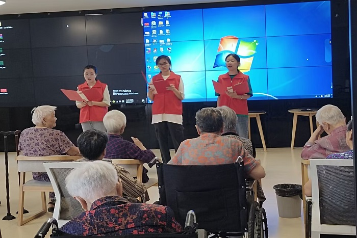 为丰富老人们的精神文化生活,志愿者为老人们带去了健美操、啦啦操、歌曲《我和我的祖国》以及朗诵《诗颂中华》等节目。老人们饶有兴致地看着节目,使劲地鼓着掌,整个养老院充满了欢声笑语,老人们脸上洋溢着幸福的笑容。