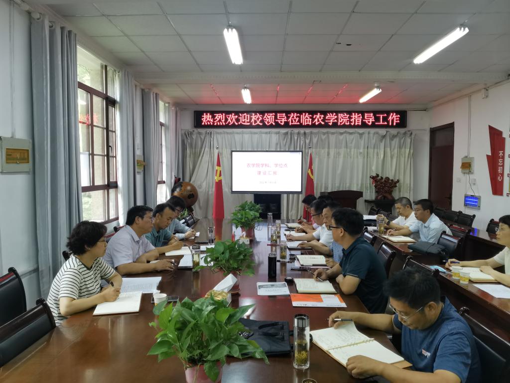 农学院党委委员、副院长李文阳从学科基本情况、一级学科建设情况、拟重点建设学科、拟重点建设学科发力点及突破思路、学科建设面临的主要问题以及学位点建设等六个方面详细汇报了农学院学科及学位点建设状况,并梳理了下一步的工作思路和举措。与会教师分别就学科方向凝练、人才队伍、存在问题、建设措施等积极发言献策。农学院党委书记何世潮和党委副书记、院长崔广荣对校领导一行来农学院指导工作表示感谢,并就下一步工作推进计划做了简要介绍。他们表示,全院教职工在校党委和行政的坚强领导下,进一步统一思想,凝心聚力,端正态度,积极作为,紧紧抓住学科建设这个龙头,以师资队伍建设、团队整合、学科平台建设、项目申报为抓手,进一步凝练好学科建设方向,突出学院特色和优势,积极推进省级重点实验室等平台的申报和建设工作,高质量完成学科建设和学位点建设任务,为学校“三步走”战略的顺利实施作出应有的贡献。(特约通讯员:汪道兵 审核:崔广荣)