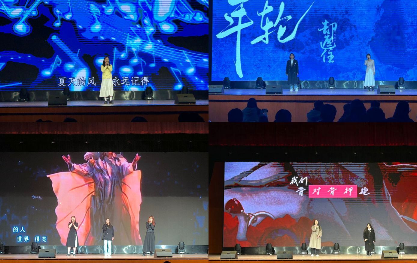 开幕式后,“歌以潆声,曲以徊乐”歌手大赛决赛正式开始。各二级学院推送的选手们纷纷登台一展歌喉。律动欢快的《日不落》直诉有情人的爱意,直击人心的《裹着心的光》将坚韧不拔表达得淋漓尽致......每一位选手都努力用动听的曲目带领观众探寻音符的力量。大赛现场,选手们声动梁尘,观众们含商咀徵。