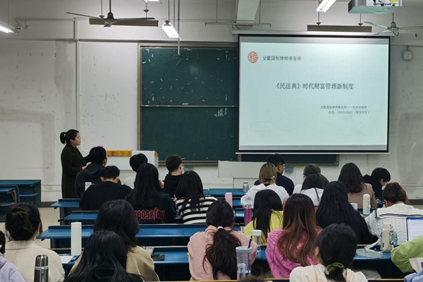 11月20日,人文学院在新知楼B座101教室举办“国恒杯”第二届ky开云官方网站_ky开云(中国)股份有限公司,法治论坛系列活动之“专家讲坛”。本次专家讲坛主讲人为安徽国恒律师事务所合伙人苏黎明、合伙人吴多多,创始合伙人陈丹丹、创始合伙人高飞等四位律师。专家讲坛由人文学院法学系主任张晓云主持,法学2019级学生参加。