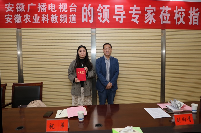 近日,我校弘扬社会主义核心价值观大学生微视频作品征集活动评审结果揭晓。11月11日,安徽广播电视台农业科教频道《皖美乡村》栏目制片人祝萍、栏目主编刘向青、制片主任王力一行在与我校涉农相关专家共商助力乡村振兴及校媒合作事宜之际,应邀出席颁奖仪式并为获奖代表颁奖。