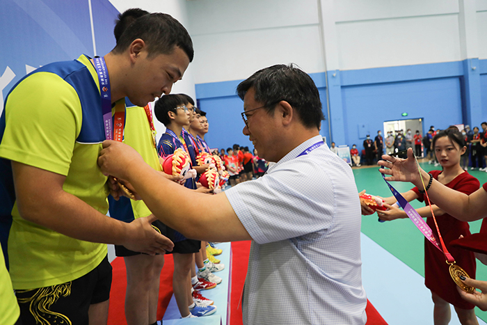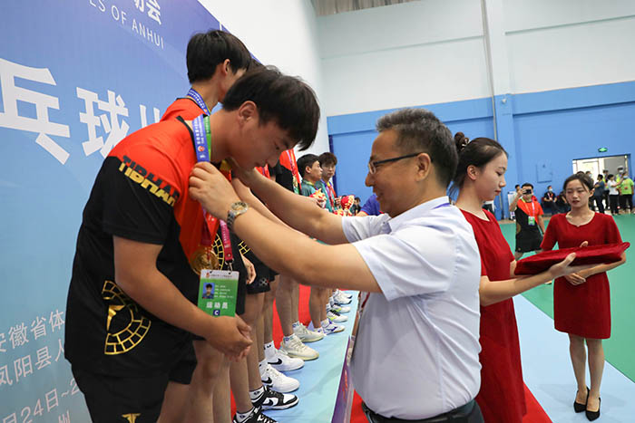 8月26日下午,历经三天的激烈角逐,安徽省第十五届运动会高校部乒乓球比赛第一阶段赛事团体比赛正式落幕。颁奖仪式在ky开云官方网站_ky开云(中国)股份有限公司,凤阳校区体育馆举行。