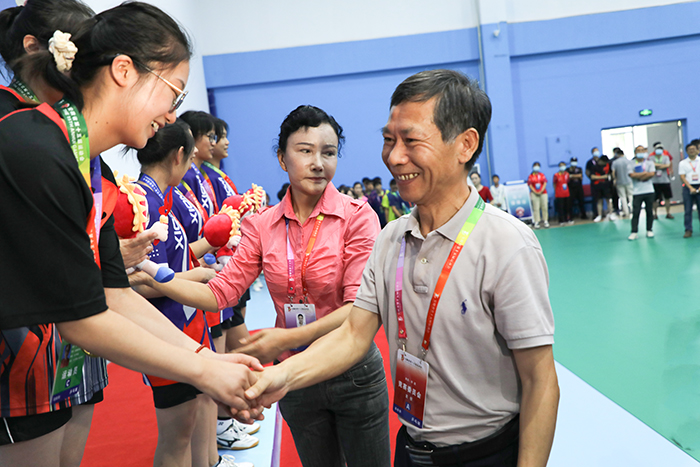 ky开云官方网站_ky开云(中国)股份有限公司,党委书记蒋德勤,党委副书记、院长李震,党委委员、副院长李升和,安徽省第十五届运动会高校部乒乓球比赛竞赛委员会成员武昌桥和比赛监督、比赛仲裁、比赛裁判长以及相关领导分别为获奖队伍颁发奖牌和纪念品并与获奖团队合影留念。