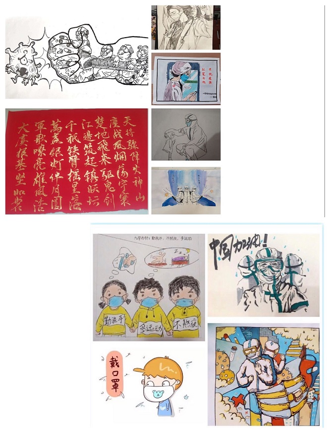 本次活动以“我对疫情有‘画’说”为主题,通过易班平台进行活动宣传及报名评选,向同学们广泛征集以抗击疫情为主题的原创画作、宣传海报、自制手抄报、临摹画作、书法、艺术字、表情包、动漫、漫画等作品。同学们一幅幅的原创作品勾勒出奋斗在一线白衣天使们与病毒抗争的英勇画面,表达了自己对医护人员和祖国的真挚祝福,以温暖和真心传递必胜信念,为疫情防控工作贡献力量。通过这些作品定格抗“疫”期间的感动画面,为打赢疫情防控阻击战加油助力,向最美逆行者致敬。
