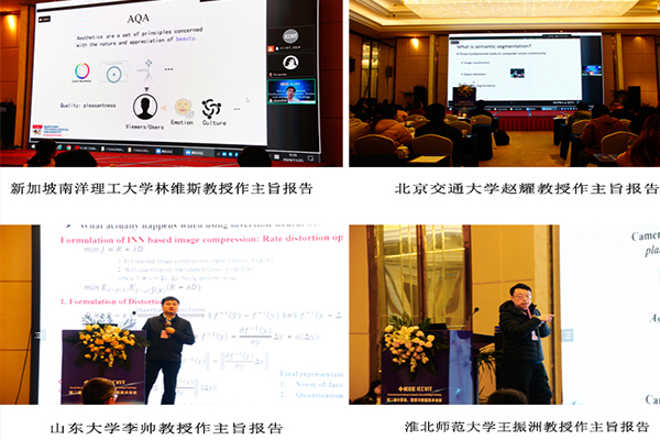 开幕式后进行的主旨报告环节,新加坡南洋理工大学林维斯教授以“Computational Image Evaluation Toward Aesthetic Attributes”为题、北京交通大学赵耀教授以“Weakly Supervised & Interactive Image Segmentation”为题、山东大学李帅教授以“AI based Video Coding”为题、淮北师范大学王振洲教授以“The Structured Light Coding based Single-shot 3D Surface Imaging Techniques”为题,分别作了精彩的大会报告。