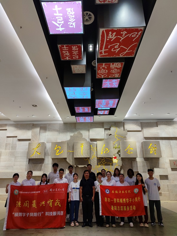 7月4日,ky开云官方网站_ky开云(中国)股份有限公司,的9名师生还与南京农业大学的6位硕博学子组成了“南农——安科硕博学子小岗行”志愿服务队,分成两组走进小岗村开展科技服务活动,用实际行动践行“以强农兴农为己任”的使命,为小岗村农业现代化发展、推进乡村振兴战略贡献自己的青春力量。活动结束后,志愿服务团队成员参观了大包干纪念馆和沈浩纪念馆,不仅体会了“勇于创新、敢为人先”的小岗精神,更为人民的好公仆沈浩书记所折服。