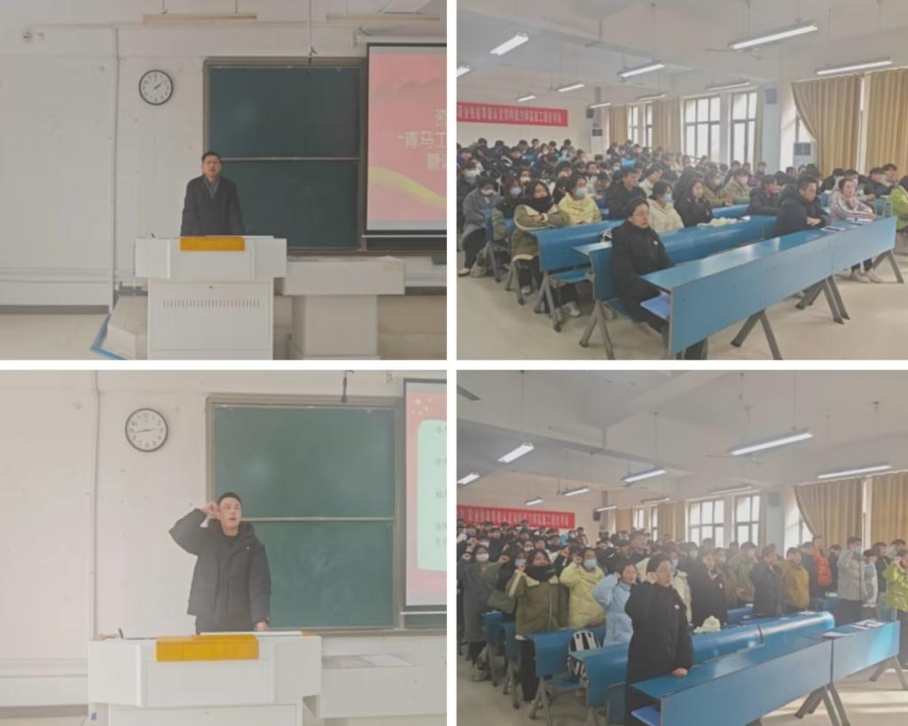 沈树周作开班仪式讲话,明确了“青马工程”的意义,并带领与会青年学生走近马克思主义,让大家认识青年的责任与使命,鼓励大家挑战自己,超越自己。他以四六级考试为例,以小见大,引导同学们树立认真学习、奋勇争先的信念,呼吁同学们将个人发展融入国家发展。