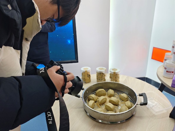 媒体采访团一行首先参观了功能农业科技馆,了解了功能农业“从0到1”的发展基础和“从1到100”的发展方向与趋势。在参观过程中,媒体记者就功能农业“三大”国家联盟及功能农业与功能食品安徽省重点实验室做了详细重点询问,纷纷赞赏我国功能农业作为农业高质量发展“新赛道”的领先地位和显著成效。随后现场品尝了由研究院研发百变粉制作的富硒高钙小馒头,激起了大家广泛兴趣并获得了一致好评。