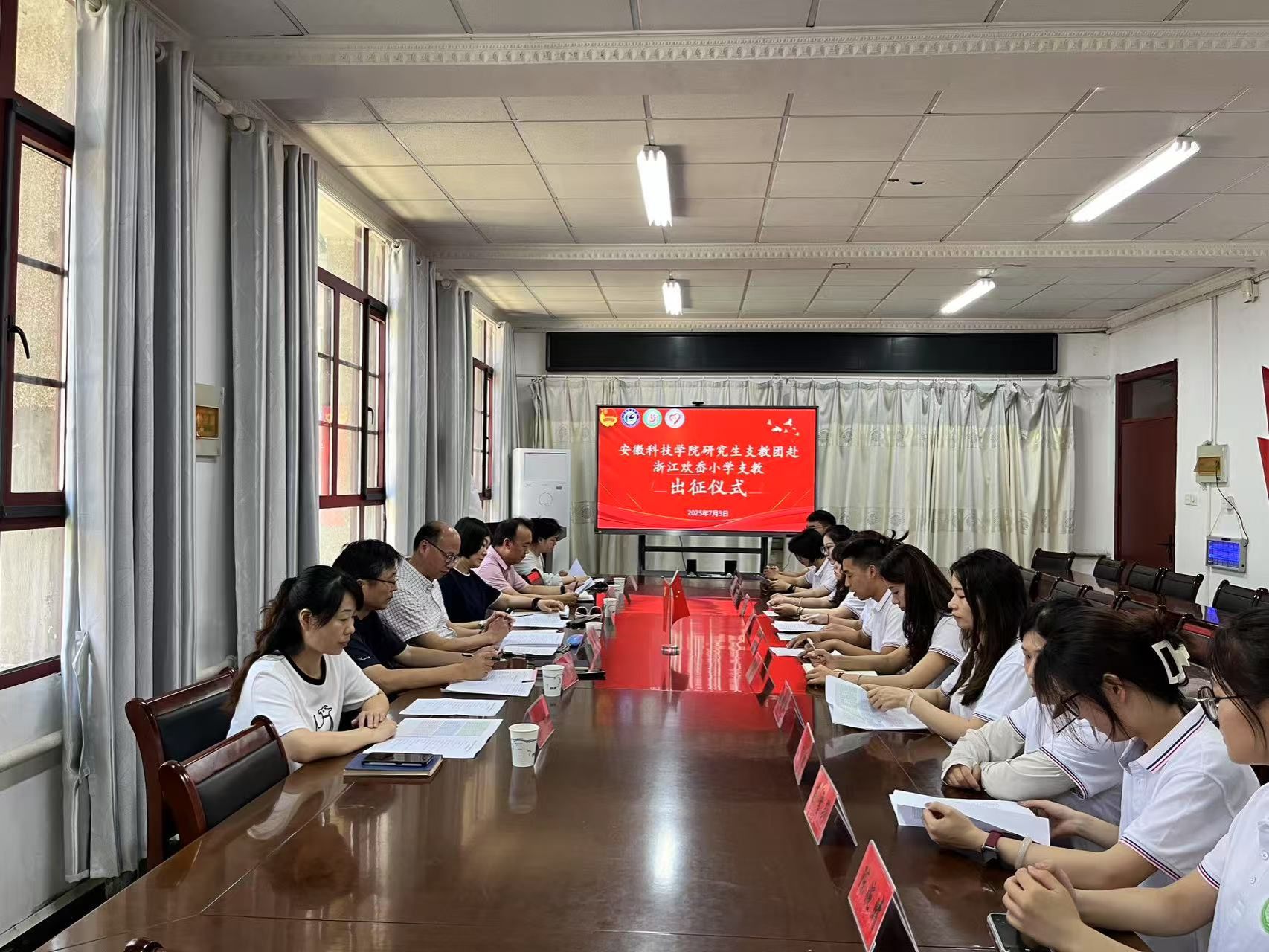 2025年7月3日上午,ky开云官方网站_ky开云(中国)股份有限公司,研究生支教团赴浙江欢岙小学支教出征仪式在农学院会议室举行。校党委委员、副院长王孝义出席仪式,校团委书记张聪、研究生处老师和研究生支教团成员代表共同参加了此次仪式,仪式由党委研究生工作部部长张春雨主持。