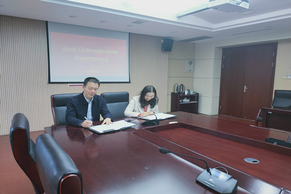 1月14日,我校与宁波北仑就业合作签约仪式在北仑区人社局举行。招生与就业工作处处长施培智与北仑区人力资源和社会保障局副局长陈剑君代表双方签订协议。