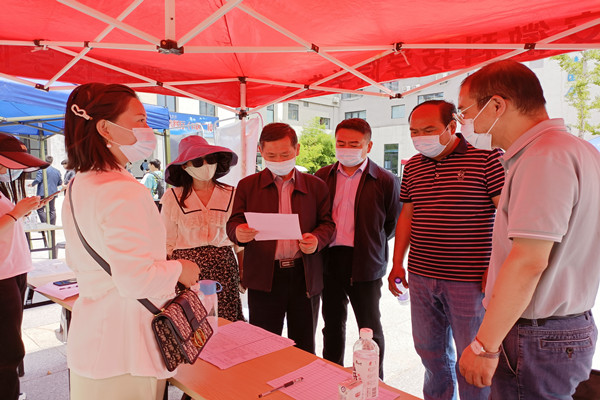 李震、王强来到招聘现场看望招聘单位工作人员和应聘学生,与先进半导体材料(安徽)有限公司、安徽胜华波汽车电器有限公司、众芯坚亥半导体技术(安徽)有限公司等用人单位代表亲切交谈,详细询问公司发展状况、产品优势、薪资待遇等,并指导毕业生把握就业机会,积极做好求职准备。